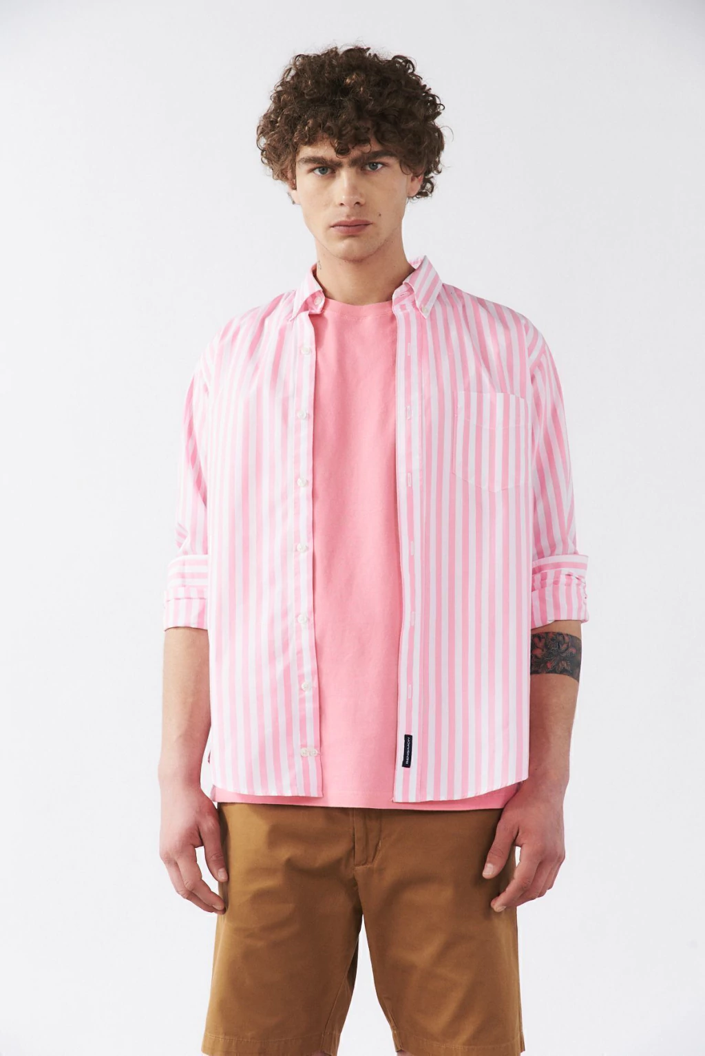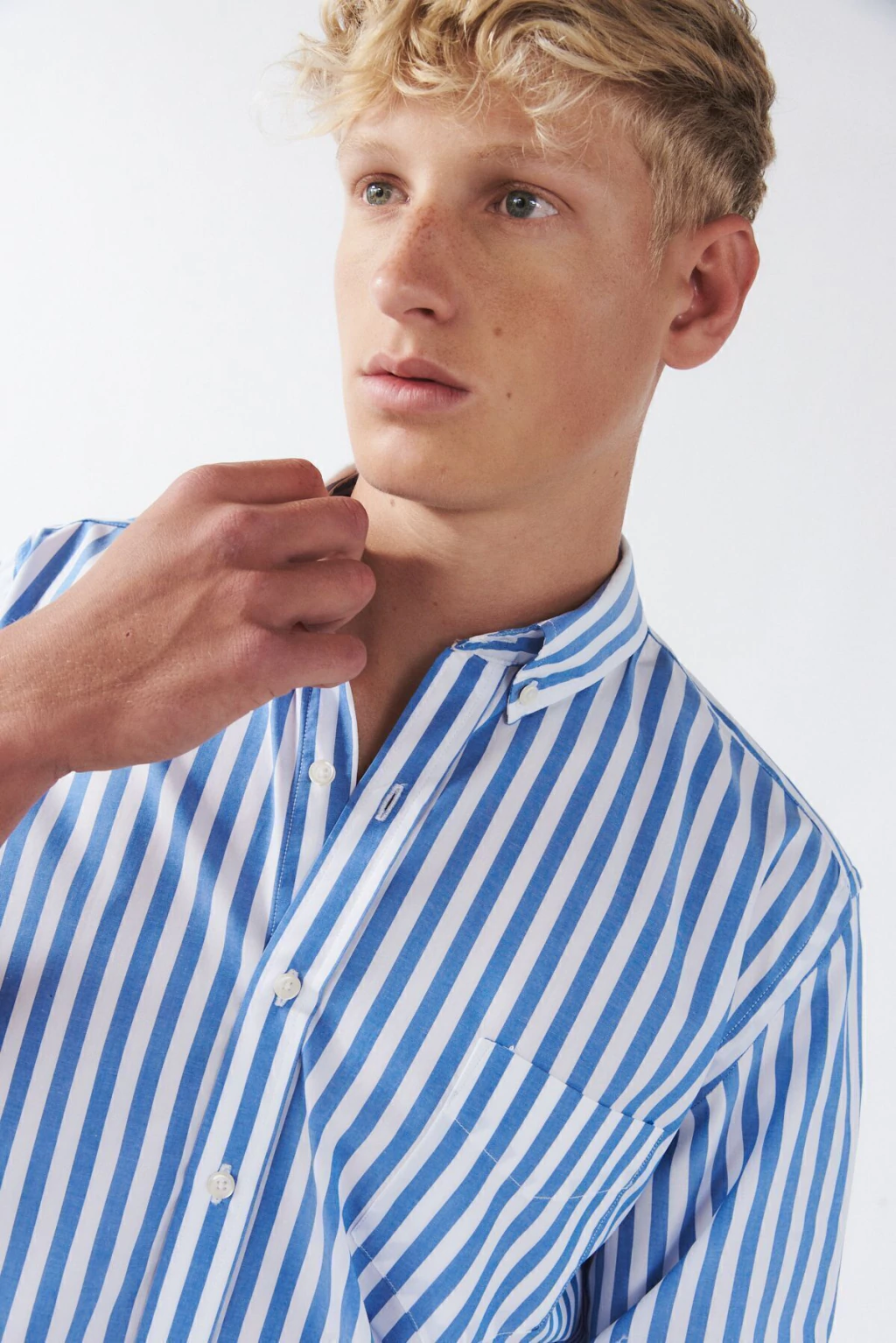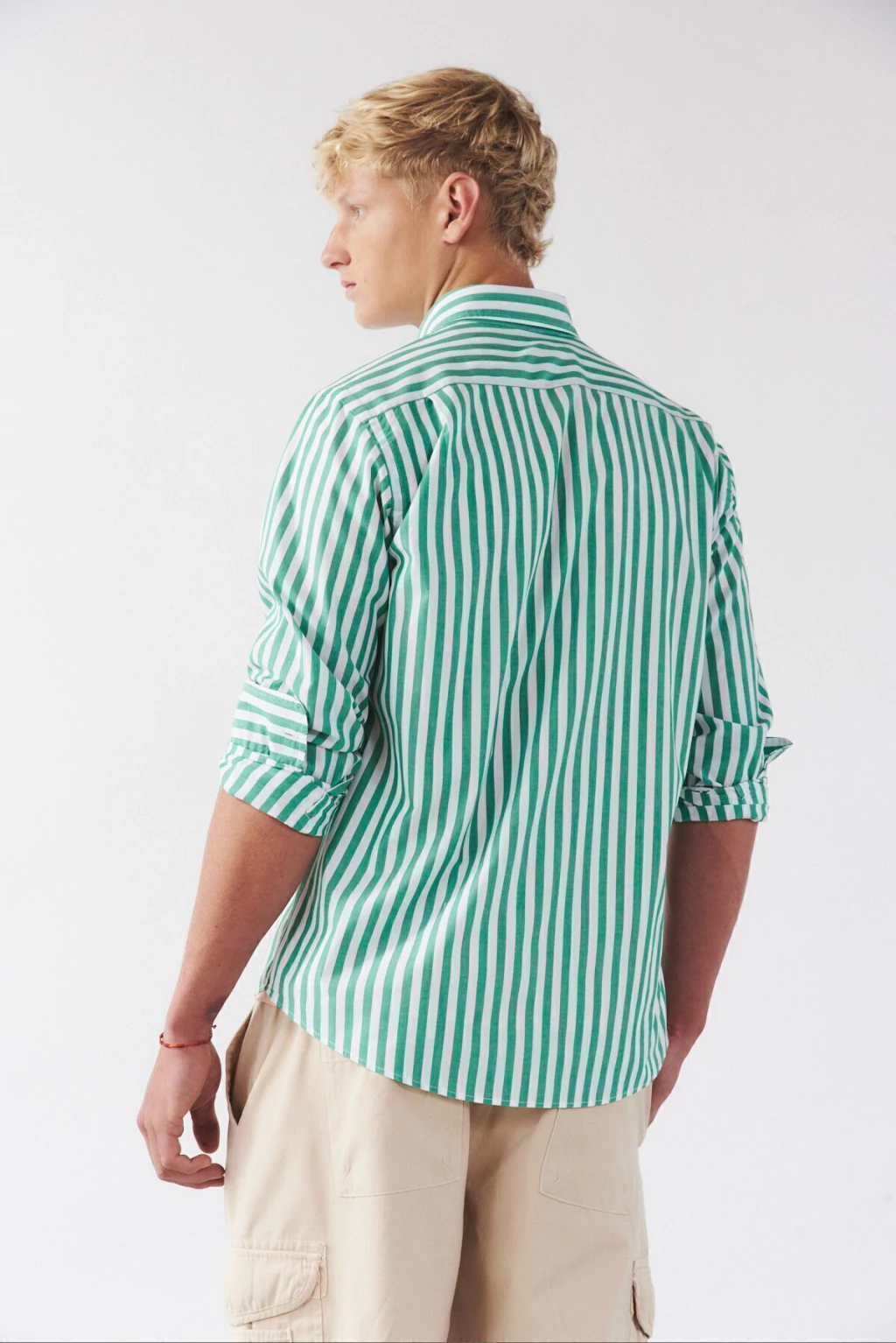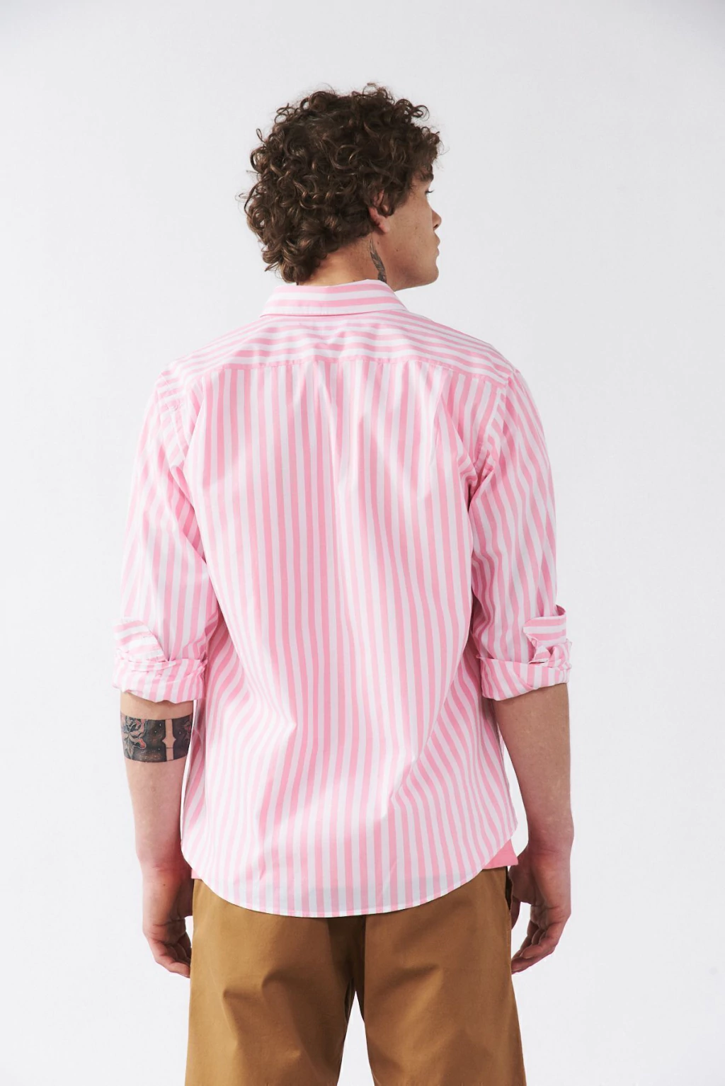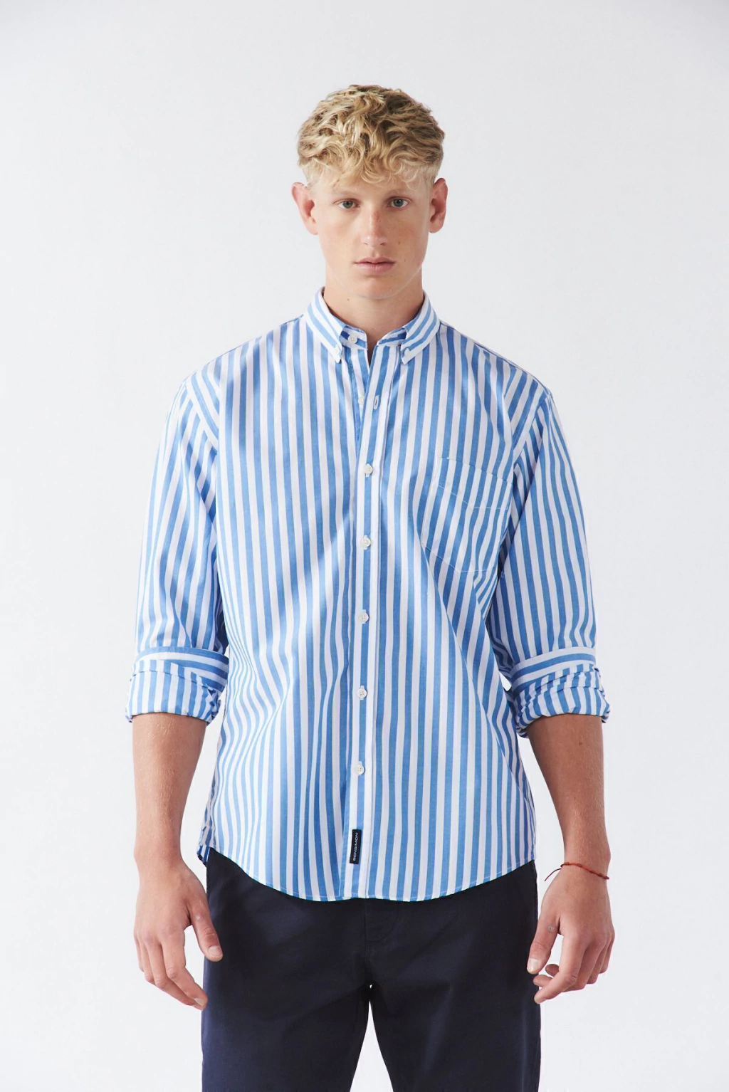 Camisa calse Custom Fit mangas largas, cuello americano con boton down. Bolsillo aplicado en delantero izquierdo. Con botones de repuesto. Tela composicion 98% algodon 2%elastano rayada. Industria Argentina.