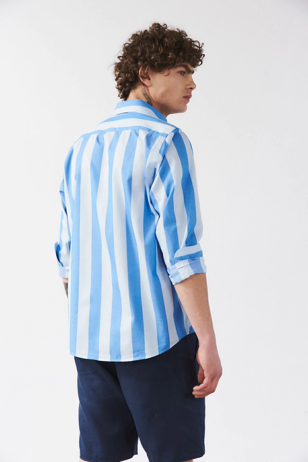 Camisa calse Custom Fit mangas largas, cuello americano con boton down. Detalle marcario en carteron. Con botones de repuesto. Tela composicion 100% algod—n rayada. Industria Argentina.