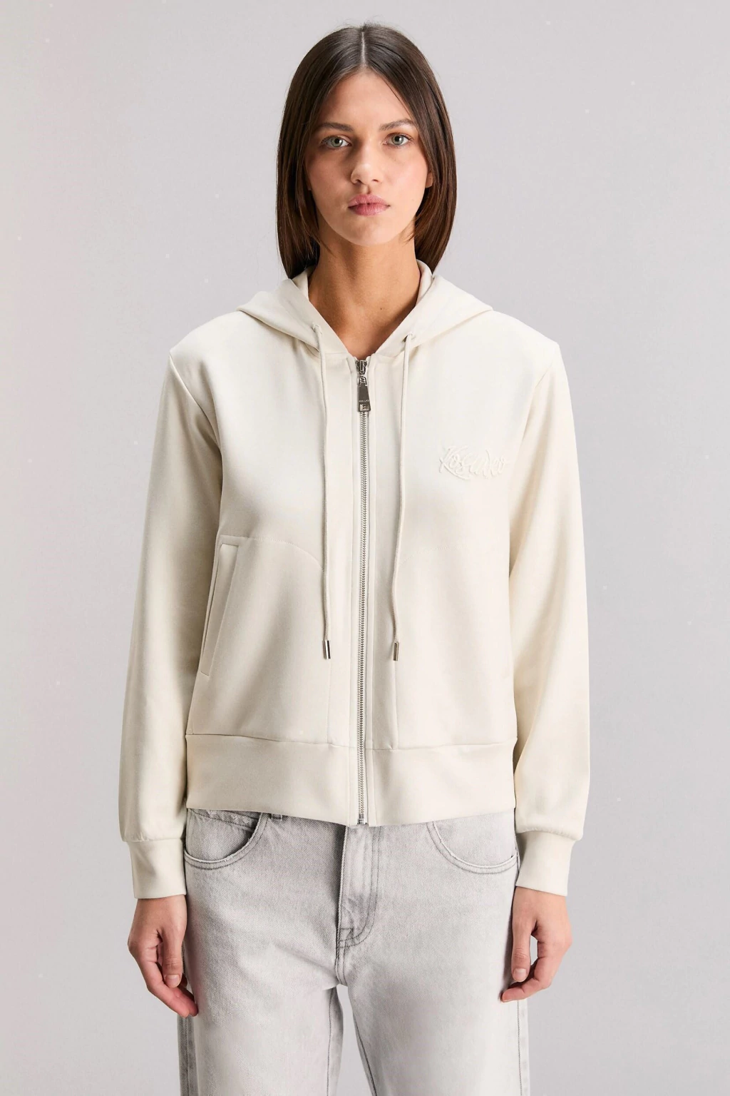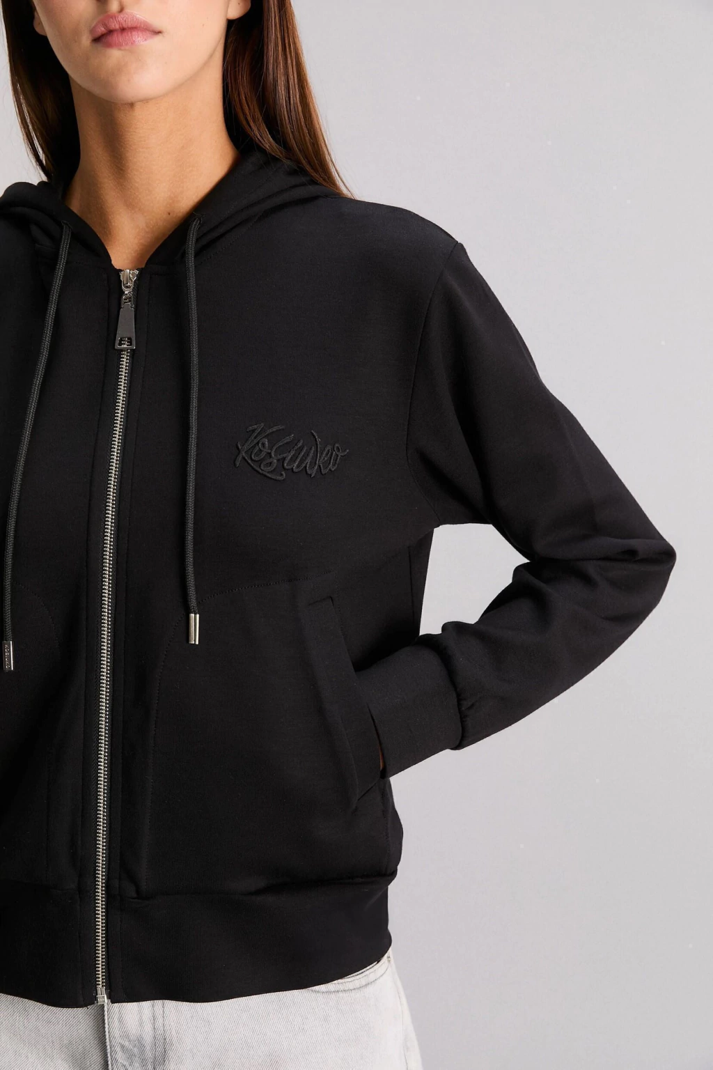 La campera Dark tears de calce regular, está confeccionada en tejido de neoprene con viscosa. Cuenta con bolsillos delanteros y bordado exclusivo de la marca en un lateral. Su acceso es mediante cierre metálico.