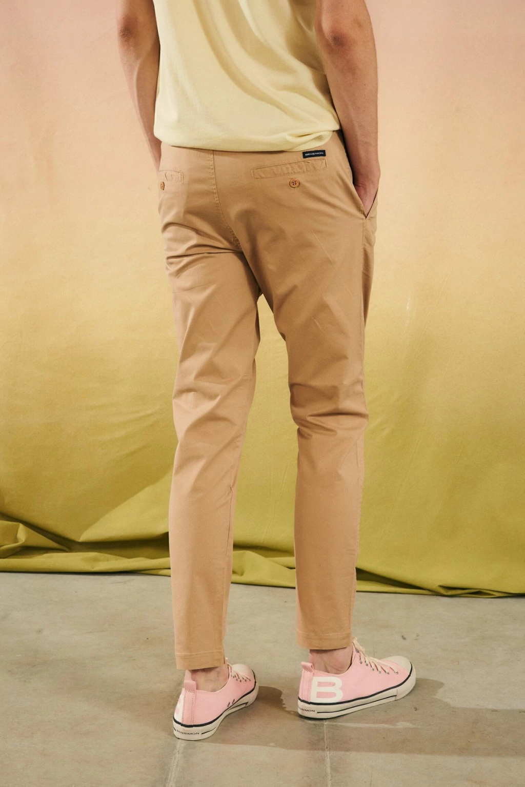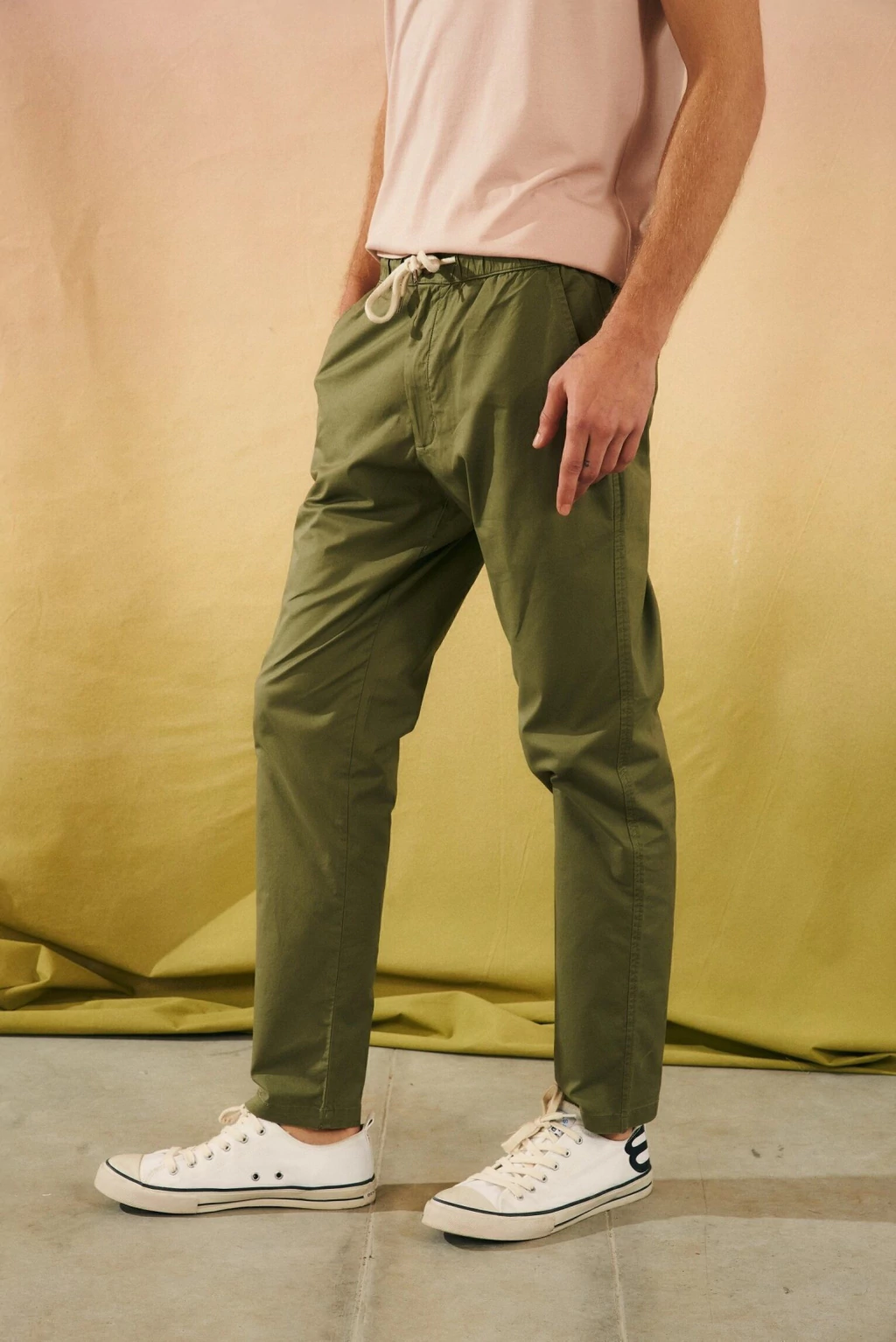 Pantalón de gabardina liviana slim fit con elástico y cordón en cintura. Composición: 97% gabardina de algodón - 3% Elastano.