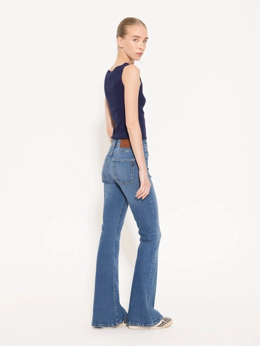 Jeans Annie Mid oxford, de tiro medio confeccionado en tejido de denim elastizado con fibra de viscosa, lo que le da una mano suave y brillosa.