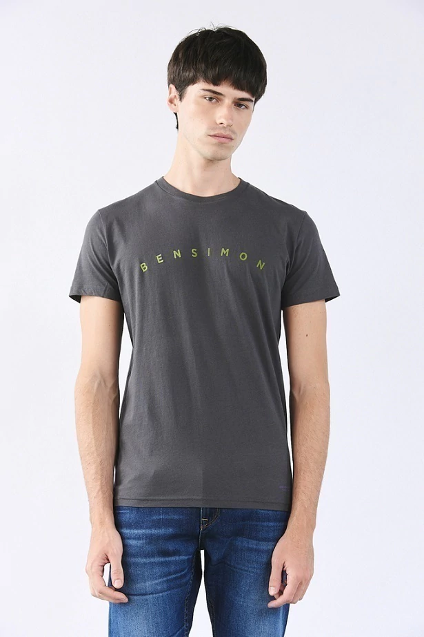 Remera con calce regular manga corta, con cuello redondo y estampa flock en el frente.