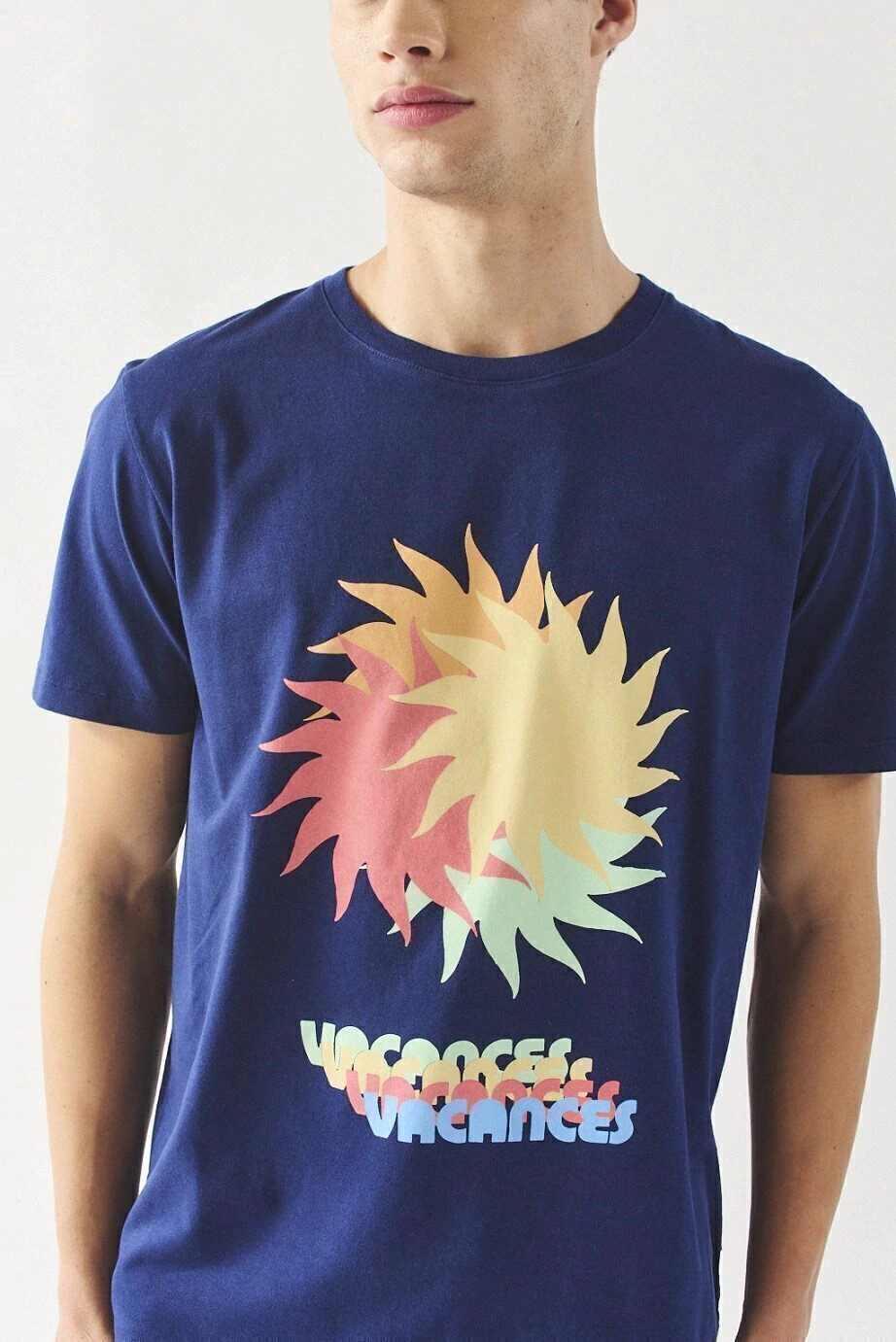 Remera con calce regular manga corta, con cuello redondo y estampa en el frente.