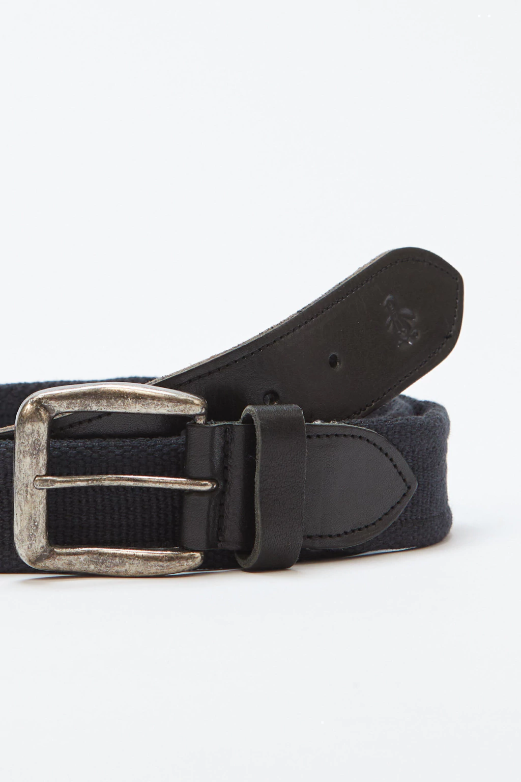 Cinturon de soga con punteras de cuero. Logo grifado en puntera.